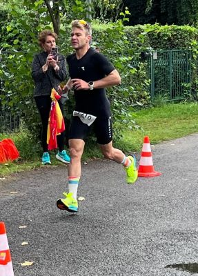 Am Tag, an dem die weltbesten Triathleten in Nizza ihren neuen Ironman-Worldchampion kürten, starteten in Erkner bei Berlin rund 1.600 Triathletinnen und Triathleten auf der halben Ironman-Distanz. Zunächst waren 1,9 km im See zu schwimmen, wo der 42-jährige Riethmüller einen guten Start in den Wettkampf hatte und bei besserer Renneinteilung sogar die 30 Minuten-Schallmauer hätte knacken können. Aber auch mit der Zeit von 32:49 Minuten war er weit vorne platziert und wechselte flott auf die 90 km lange relativ flache Radstrecke, die er bereits nach 2:17 Stunden absolviert hatte. Dann hakte es allerdings etwas im sonst perfekten Rennablauf und der Hechinger vergeudete viel Zeit auf der Suche nach seinem Wechselplatz, den er erst nach einigem Umherirren wiederfand. Den abschließenden Halbmarathon ging er dann umso beherzter an und lief nach 1:33 Stunden – erneut nur relativ knapp oberhalb einer Schallmauer, nämlich 1 ½ Stunden für die 21,1 km, nach insgesamt 4:33 Stunden glücklich über die Ziellinie. Mit dieser tollen Zeit platzierte er sich mit Rang 13 unter 130 Startern seiner Altersklasse M 40-44 sowie auf Gesamtrang 132 von 1585 Finishern ziemlich weit vorne.