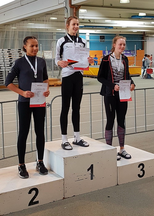 Mit drei Bestleistungen und einem kompletten Medaillensatz kann Sandrina Sprengel mehr als zufrieden sein und auch mit einem sehr guten Gefühl in die Württembergischen Hallenmehrkampfmeisterschaften nächste Woche gehen.