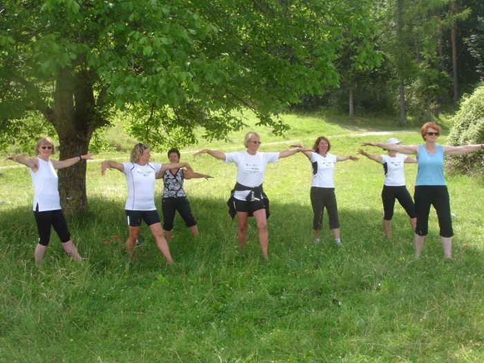 Qi-Gong 200BildAm letzten Juni-Samstag machten die Walking-Betreuerinnen der LG Steinlach zusammen mit ihrer Leiterin ihren ersten „Betriebsausflug“ ohne Stau und Anfahrtsstress in die allernächste Umgebung. Beim gemeinsamen leckeren Frühstück gab’s schon mal eine Überraschung – die Kleiderordnung war nicht abgesprochen, so dass sich die Betreuerinnen schmunzelnd sowohl in eleganter Festkleidung als auch in legerer Sportkleidung begrüßen durften.