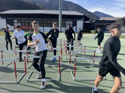 Das Trainingslager startete um 6:45 Uhr mit der Abfahrt in Mössingen. Von dort aus ging es circa 2,5 Stunden zur ersten Haltestelle an der Grenze zu Österreich. Circa 1 Stunden später erreichten wir die zweite kurze Haltestelle Zugspitzblick, wo wir überrascht feststellten, dass es viel Schnee gab. Als wir um 13:30 schließlich in Natz/Schabs ankamen, waren alle erleichtert, dass die lange Fahrt vorbei war. Nachdem wir bis 15 Uhr Zeit hatten unsere Zimmer zu beziehen und anzukommen, ging es auch schon wieder los ins Stadion. Dort absolvierten wir unsere erste Trainingseinheit. Diese bestand aus Aufwärmen, Dehnen und Hürdenkoordination durch einen sogenannten Hürdenwald.