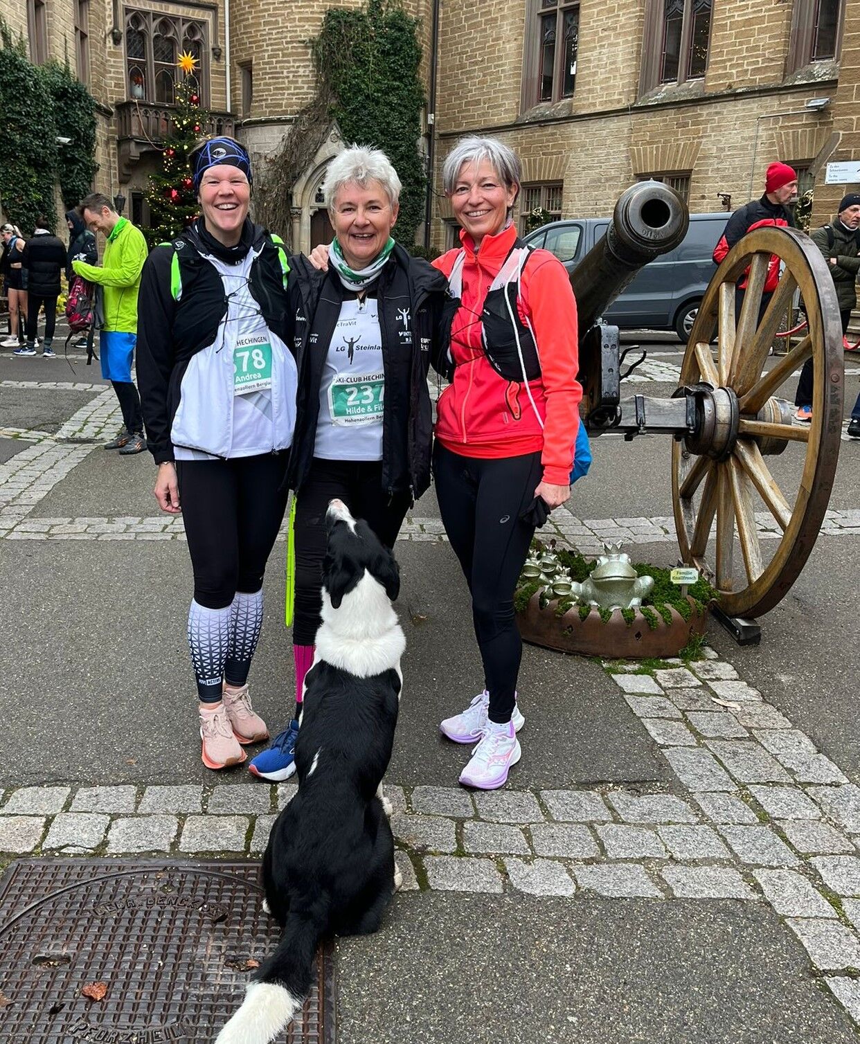 Zum 39. Hohenzollernberglauf am 9. November waren weit über 400 Läuferinnen und Läufer aus Nah und Fern nach Hechingen geströmt, um auf der reizvollen Strecke zu starten. Darunter fast zwei Dutzend Berglauffans der LG Steinlach-Zollern, die nicht nur sehr zahlreich mitmischten, sondern mit acht Podestplätzen auch leistungsmäßig beeindruckten. Am schnellsten der LGSZ-Starter/innen legte Triathlet Jens Kalmbach in 35:07 Minuten die gut 8 km lange und mit über 350 Höhenmetern sehr anspruchsvolle Strecke bis in den Innenhof der Burg Hohenzollern zurück – und wurde mit dem Bronzerang in seiner Altersklasse M30 belohnt. Weitere vier AK-Bronzeplatzierungen gingen an Christoph Groß (M35), Michael Fuchs (M60), Alexandra Unger (W50) und Hilde Buckenmayer (W65). Erfreulicherweise starteten im Team der LG Steinlach-Zollern, das sich überwiegend aus älteren oder doch zumindest erfahrenen (Berg-)Läufer/innen zusammensetzte, dieses Jahr auch zwei junge Leichtathletinnen. Rang 1 in 47:13 Minuten für Elena Eissler und Rang 2 in 47:47 Minuten für Hanna Schlaier sprangen für die beiden mutigen Nachwuchssportlerinnen in ihrer AK WU16 dabei heraus. Einen schönen Silberrang in ihrer AK W50 gab’s für die Ultraläuferin Kerstin Konstanzer, die üblicherweise solche Distanzen und Höhenmeter gleich mehrfach innerhalb eines Wettkampfs absolviert. Aber auch alle weiteren LGSZ-Starter/innen freuten sich, wenn sie nach dem kräftezehrenden Aufstieg im Burghof die Ziellinie erreichten und ein weiteres Mal ein Finisher-Foto vor der Kanone schießen konnten.